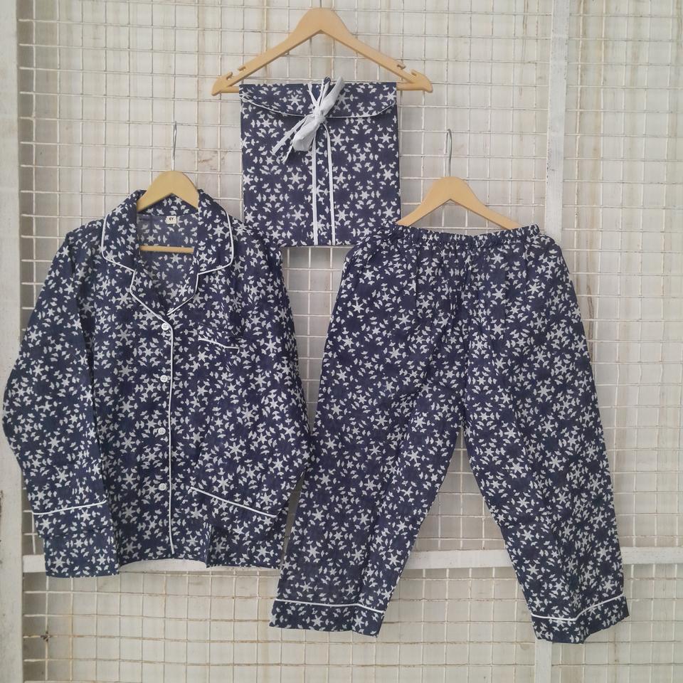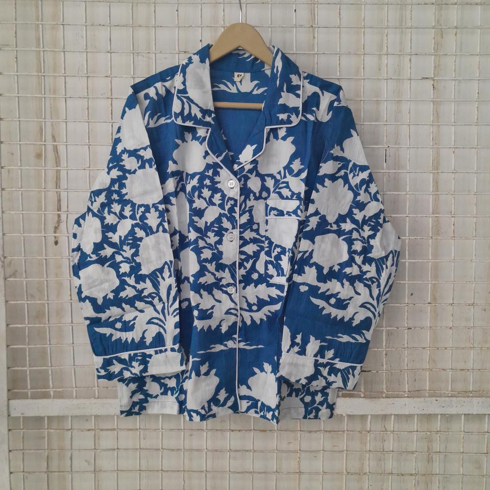 ชื่อผลิตภัณฑ์:ชุดนอนเด็กผ้าฝ้ายพิมพ์ลายบล็อกมือสวยงาม