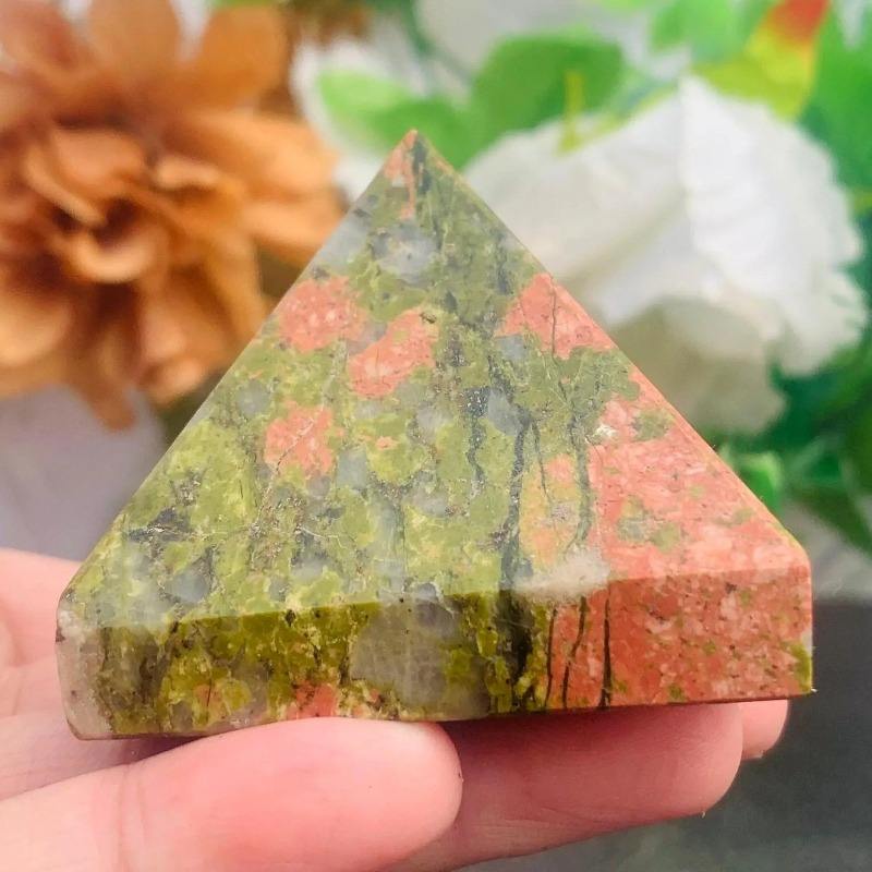 คริสตัลยูนาไคต์รูปทรงปิรามิดแกะสลักด้วยมือคุณภาพสูงจากธรรมชาติ ยี่ห้อคริสตัลโฮล่า สำหรับตกแต่งบ้านตามหลักฮวงจุ้ย ขายส่ง