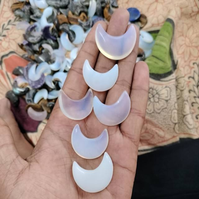 จี้หินควอตซ์รูปดวงจันทร์แกะสลักด้วยมือหินธรรมชาติที่มีคุณภาพดีที่สุดสำหรับการรักษาคริสตัลอาเกต