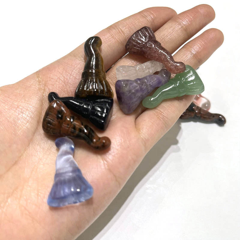 ขายส่งมือแกะสลักควอตซ์ธรรมชาติมินิมายากลไม้กวาดแม่มดไม้กวาดคริสตัลสำหรับการตกแต่งและของขวัญ