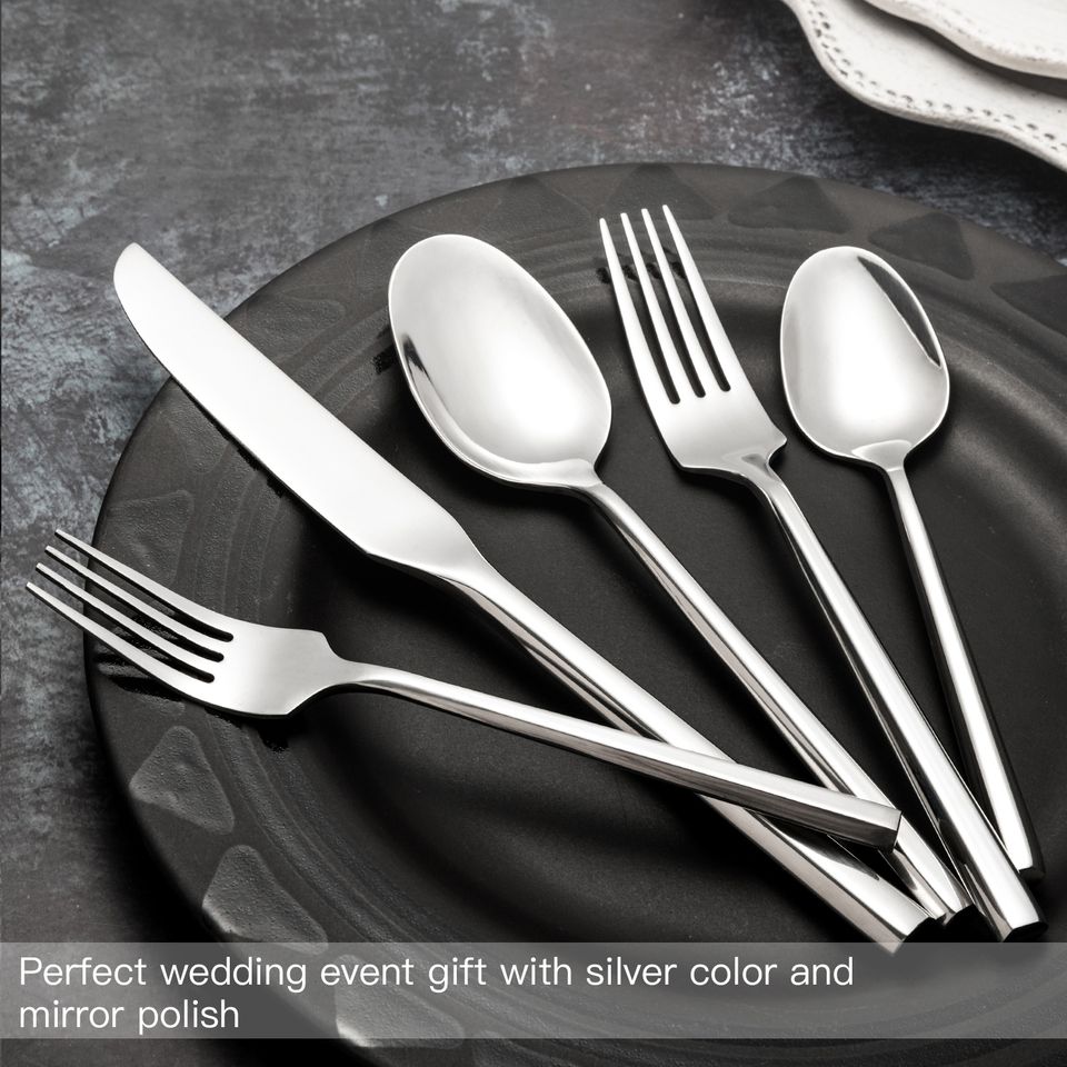 ชุดเครื่องใช้บนโต๊ะอาหารสำหรับงานแต่งงานทำจากสเตนเลสขัดเงาด้วยมือทรงหกเหลี่ยม