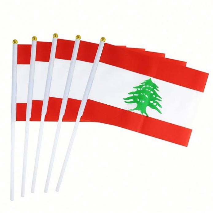 ธงเลบานอนขนาดเล็กแบบถือสำหรับขายส่ง ธงชาติทำจากโพลีเอสเตอร์ เหมาะสำหรับงานปาร์ตี้ กีฬา และตกแต่ง