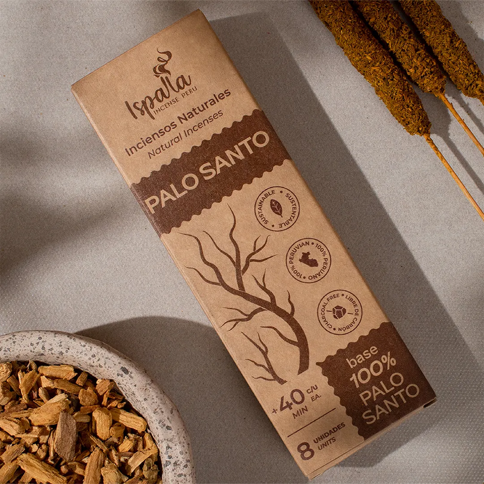 ธูปไม้ปาโลซานโตแบบม้วนด้วยมือจากเปรู ปราศจากถ่าน ทำจากไม้เบอร์เซรา กราวีโอเลนส์ สำหรับรมควัน ขายส่ง