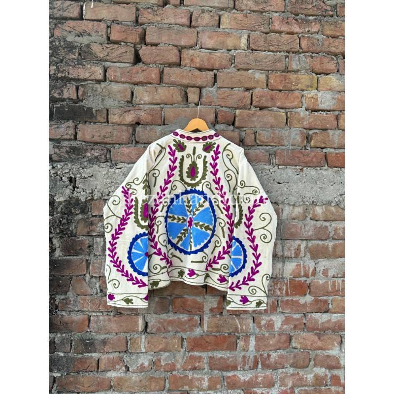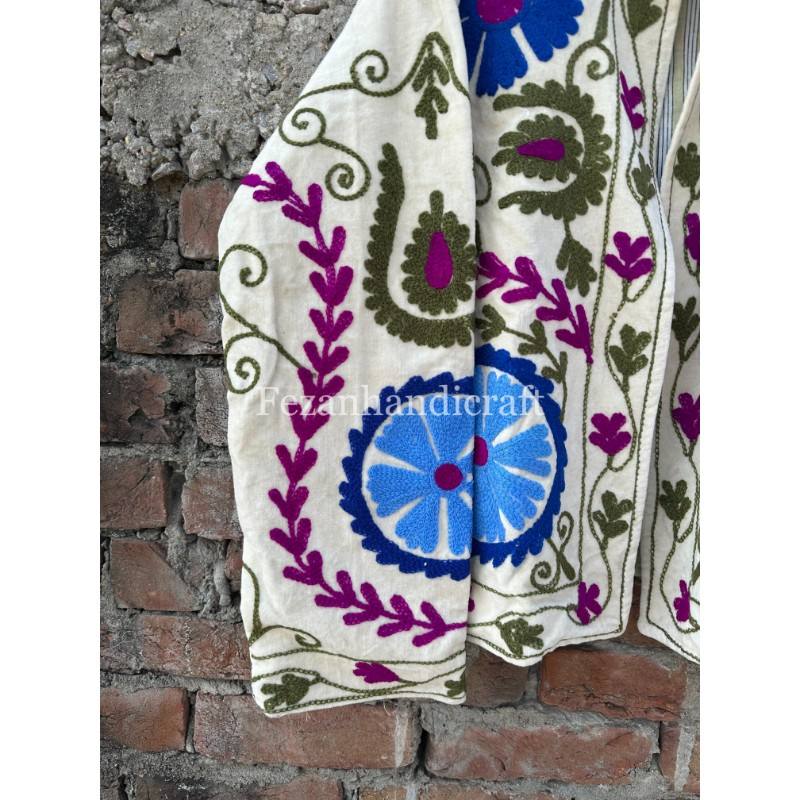เสื้อโค้ทกำมะหยี่ปักลายดอกไม้แบบขายส่ง เสื้อแจ็คเก็ตปักลายแบบอุซเบก ซูซานี เสื้อแจ็คเก็ตแบบยูนิเซ็กซ์ มีกระเป๋าข้างสองข้าง