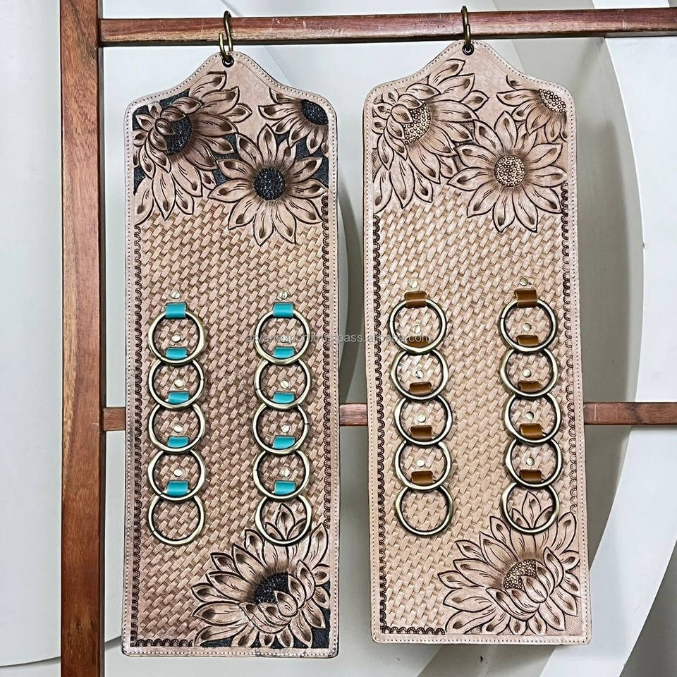 ที่แขวนผ้าพันคอหนังวัวแท้ทำมือแบบขายส่ง พร้อมห่วงหลายวงสำหรับจัดระเบียบตู้เสื้อผ้า แขวนตกแต่ง ทนทาน