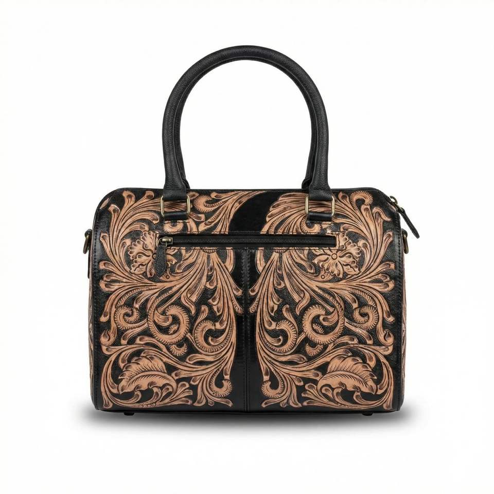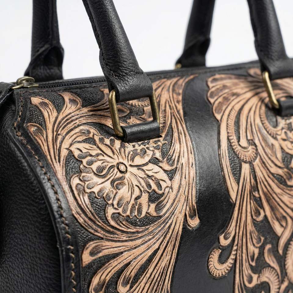 Product name:Tooled Leather Speedy Duffle Bag