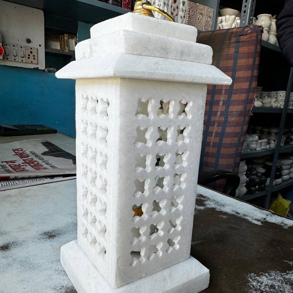 โคมไฟหินอ่อนธรรมชาติแกะสลักด้วยมือสไตล์โมเดิร์นกำหนดเองผลิตภัณฑ์สวนกลางแจ้งโคมไฟหินแกรนิต