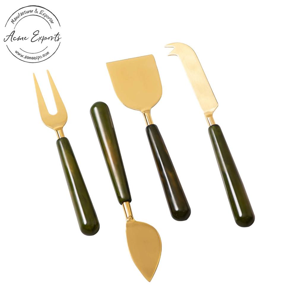 ชุดมีดตัดชีสหินอ่อนและทอง3ชิ้นเหมาะสำหรับเสิร์ฟชีสและอาหารเรียกน้ำย่อยอุปกรณ์ครัวที่ทันสมัย