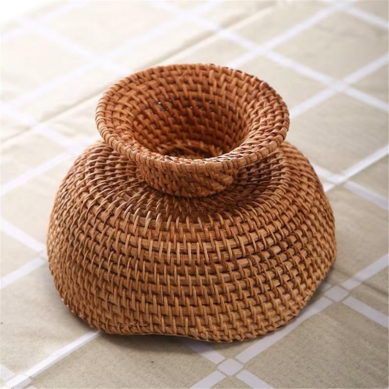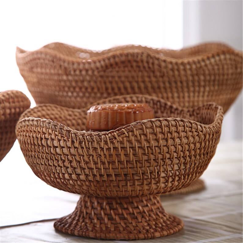 ตะกร้าหวายสานสำหรับใส่ขนมปังผลไม้ตั้งโต๊ะทำด้วยมือถาดไม้ไผ่สำหรับเก็บในห้องครัว