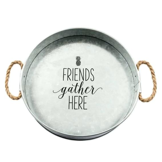 ถาดโลหะทรงกลมชุบสังกะสีพิมพ์ลายทำด้วยมือ