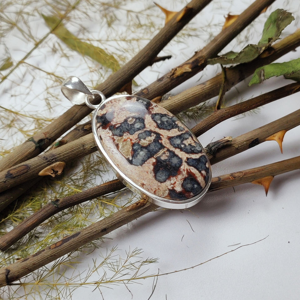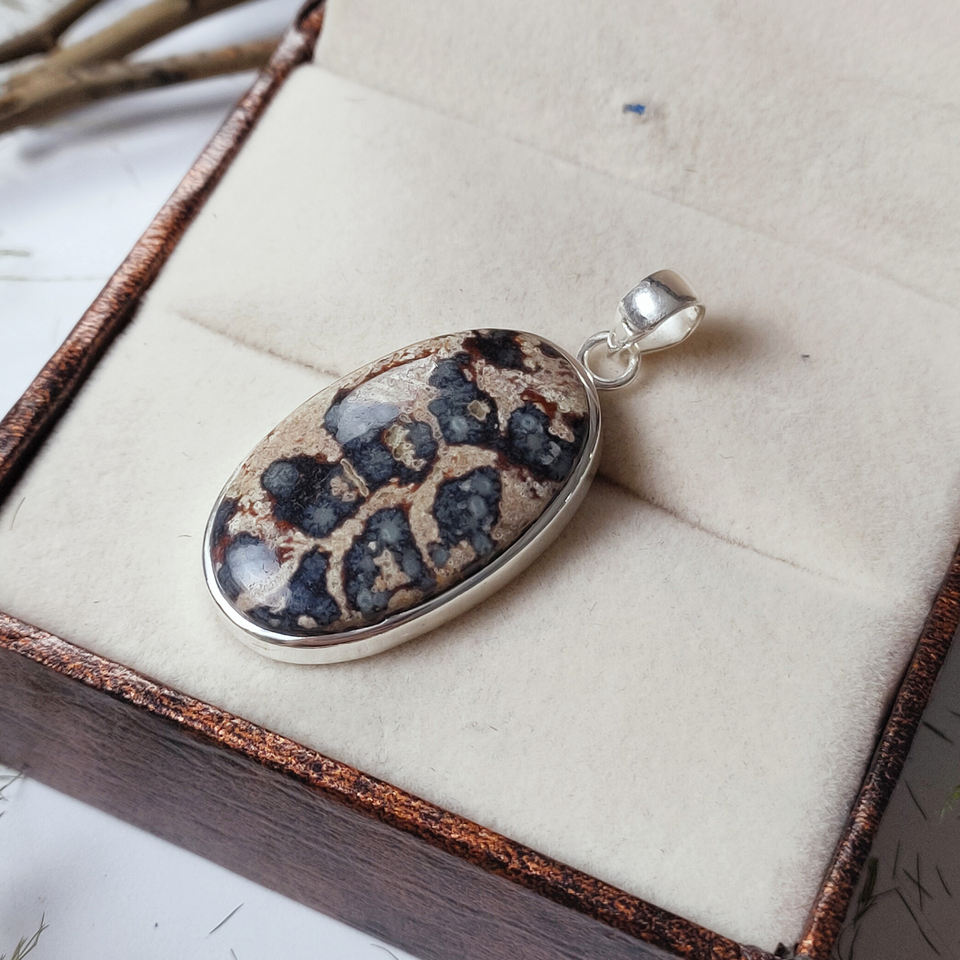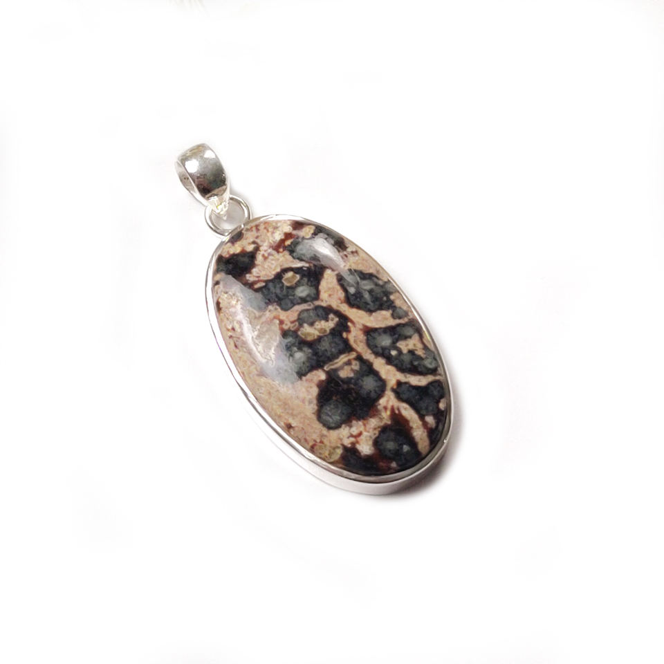Collet-PP-27ทรงวงรีทรงเพชรพร้อมจี้เงินสเตอร์ลิง925พลอยฟอสซิล crinoid ทำด้วยมือ