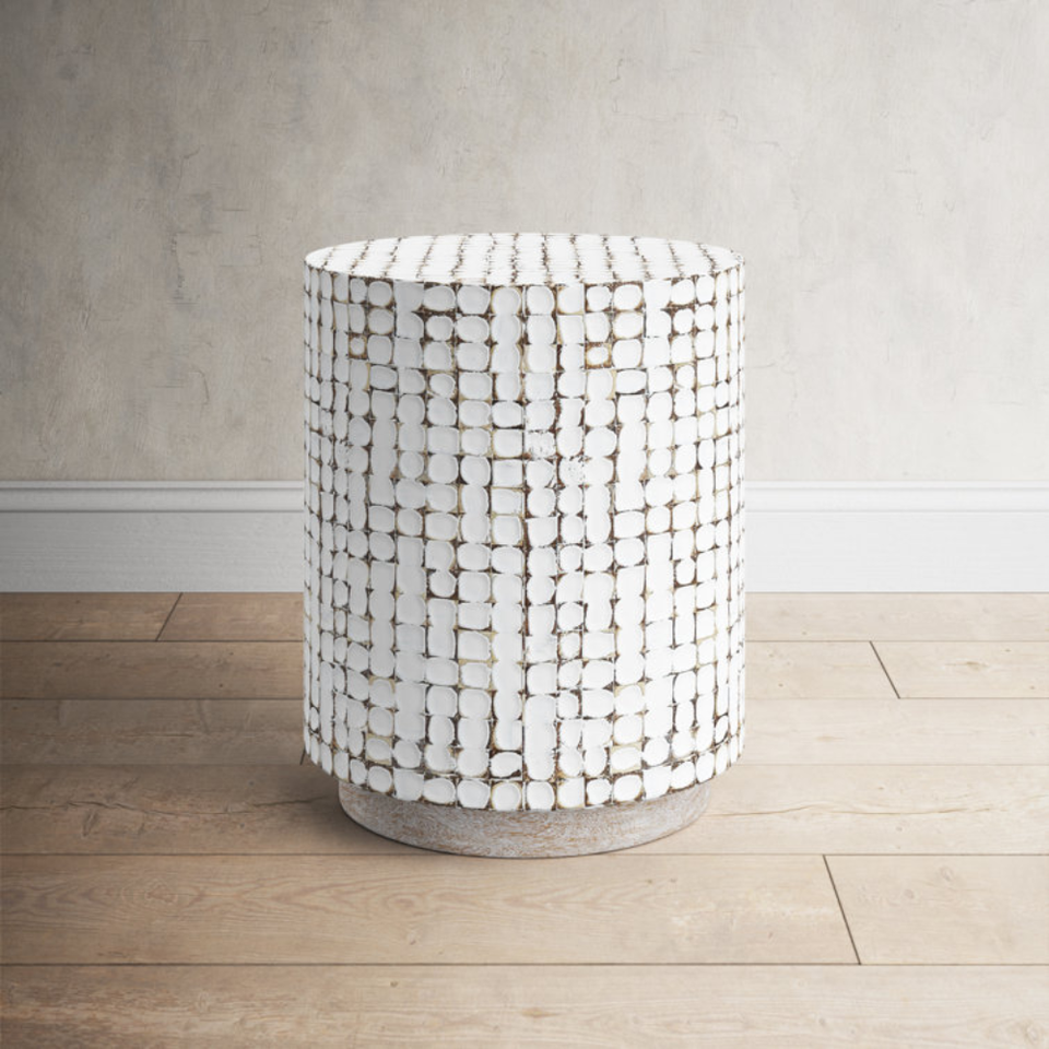 โต๊ะปลายทรงสูงฝังเปลือกมะพร้าวแบบทำมือสไตล์ร่วมสมัย