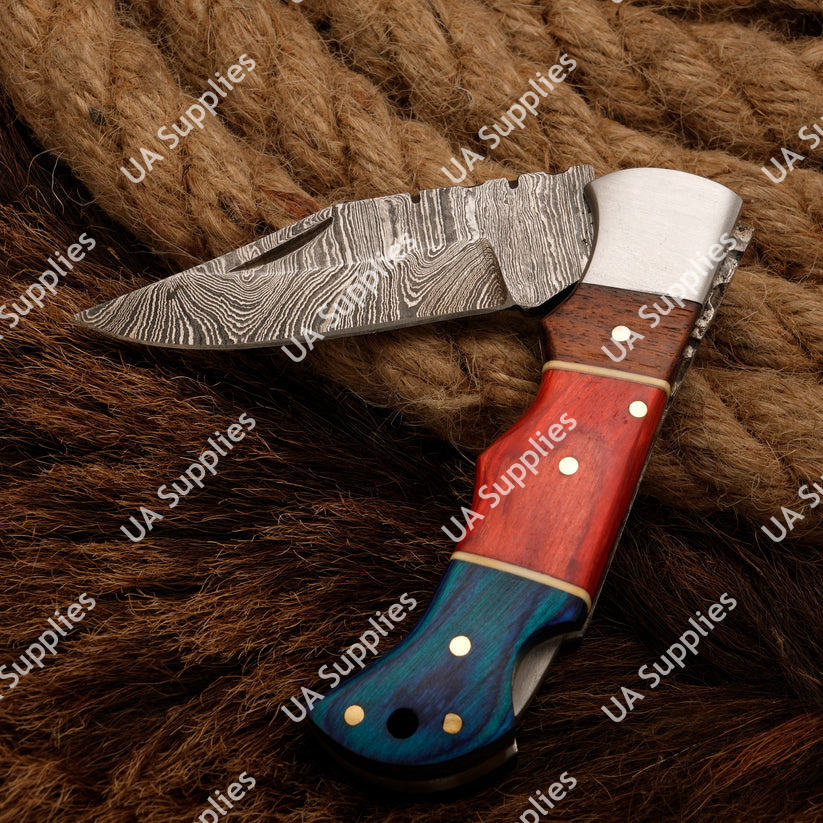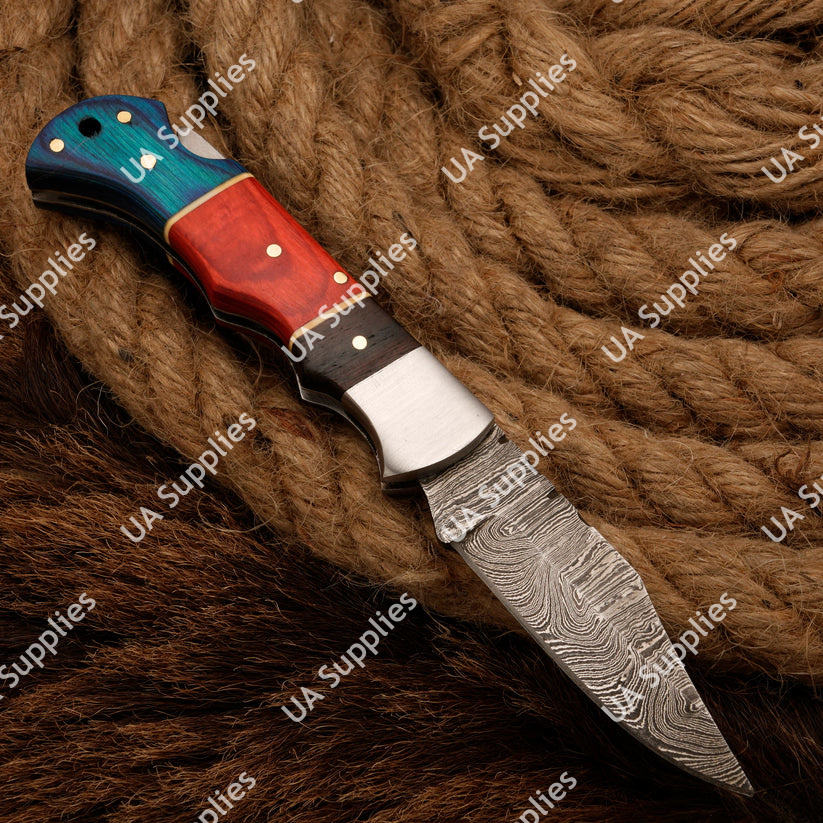 Handmade Damascus Steel Outdoor Camping Folding Knife