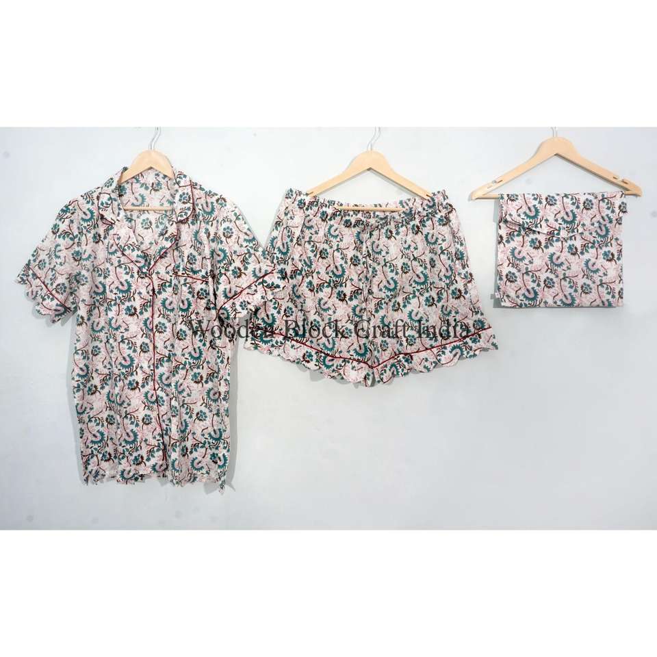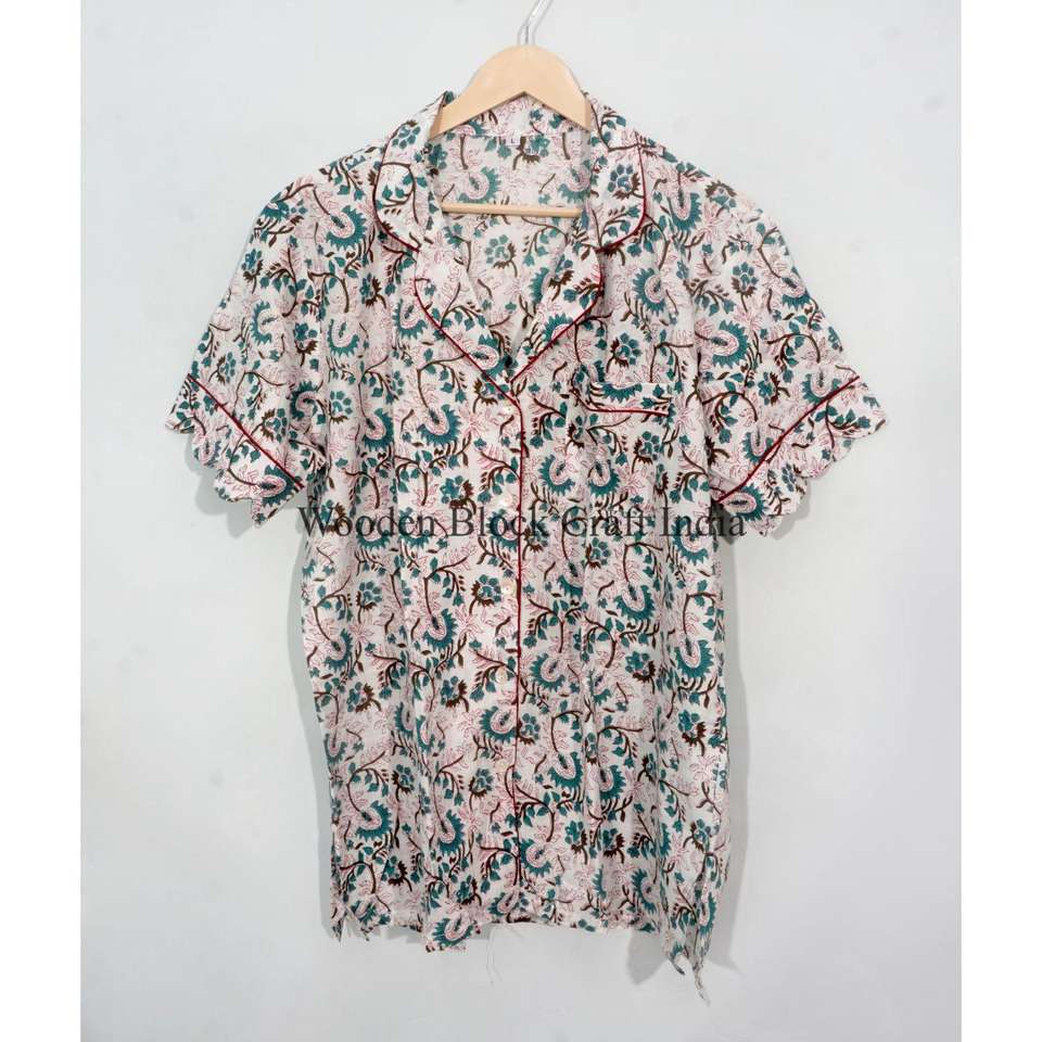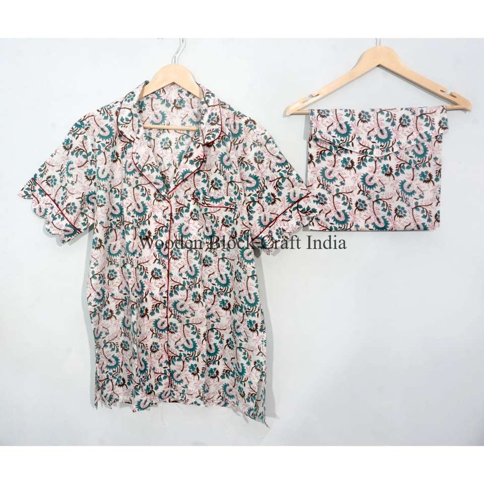 ชุดนอนผู้หญิงแขนสั้นพิมพ์ลายดิจิทัล ระบายอากาศได้ดี งานแฮนด์เมด ขายส่ง ผ้าฝ้ายแท้ 100% ลายดอกไม้ สำหรับฤดูร้อนและฤดูใบไม้ร่วง