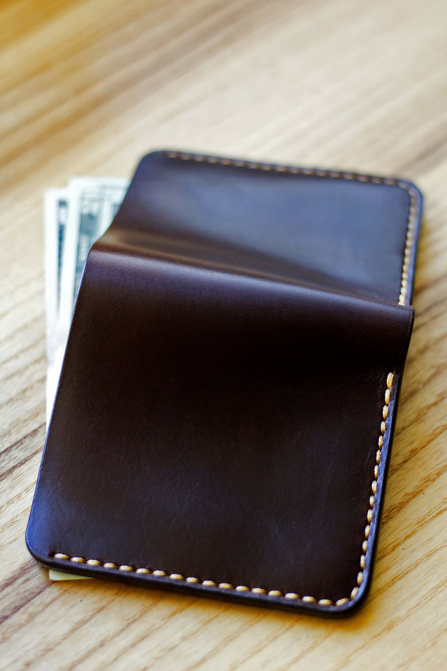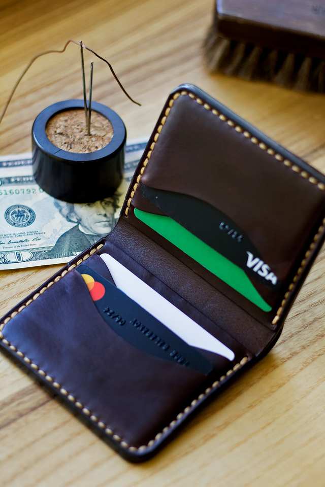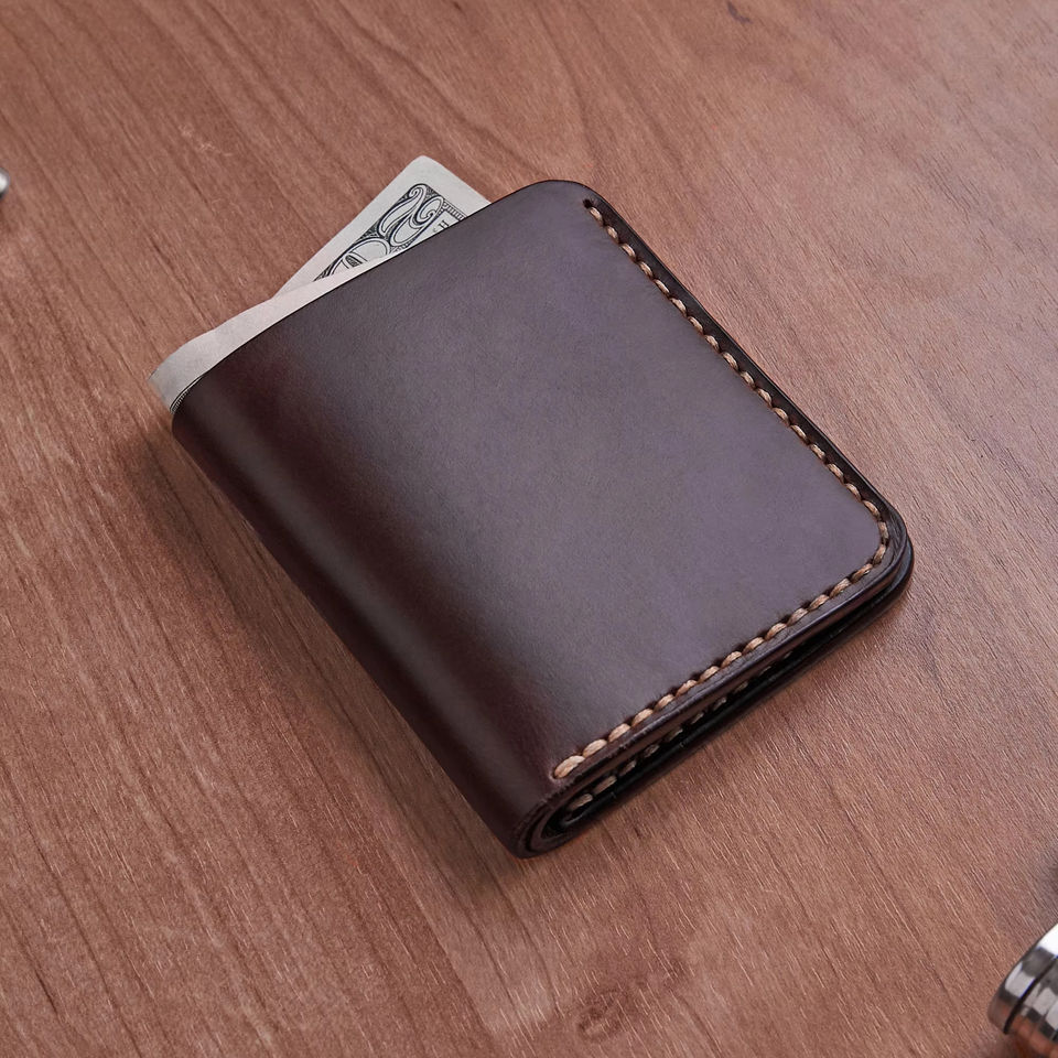 กระเป๋าสตางค์หนังแท้ทำมือแบบพับสองตอน ป้องกัน RFID ปรับแต่งได้ แฟชั่นอเนกประสงค์สำหรับผู้ชาย ขายส่ง