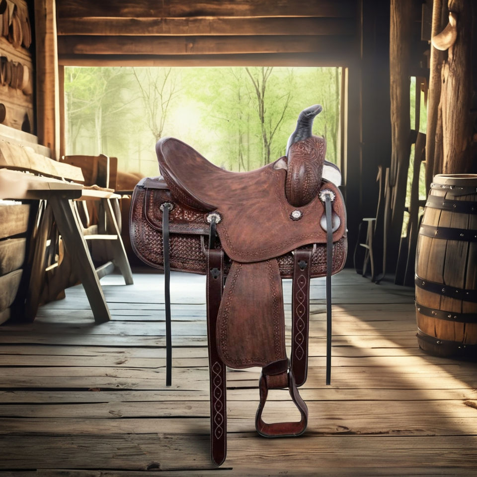 อานม้าหนังแท้ทำมือขายส่ง พร้อมแผ่นรองอานพิมพ์ลายตามสั่ง | อุปกรณ์ขี่ม้าแบบพกพา