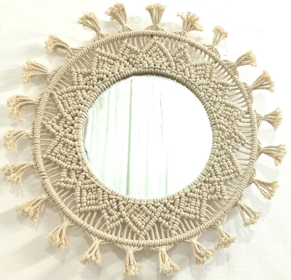 Wholesale Handmade Macrame Wall Mirror Handicraft Boho Decorative Mirror for Home Decoration