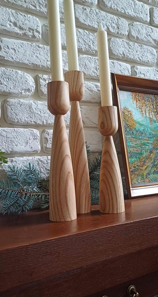 ชุดเชิงเทียนไม้มะม่วง3สีแบบทำมือ