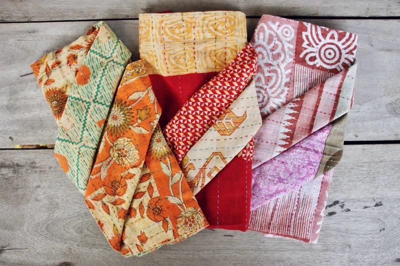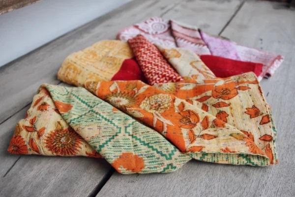 ผ้าเช็ดปากผ้าฝ้าย Kantha สำหรับโต๊ะอาหาร