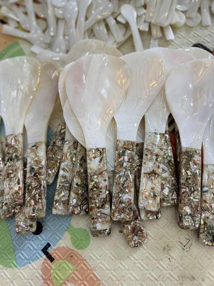 ช้อนทำอาหารทำมือจากเปลือกหอยมุก ช้อนสลัด ช้อนขนมหวาน สำหรับร้านอาหารและครัวเรือน จากเวียดนาม ขายส่ง