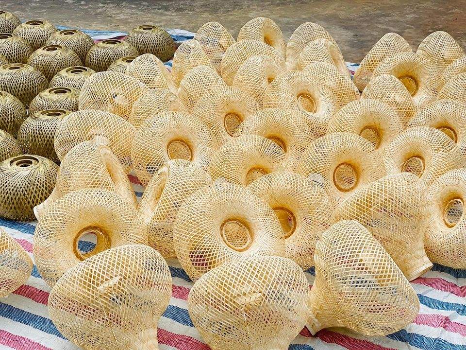 โคมไฟระย้าและโคมไฟระย้าทำจากไม้ไผ่ธรรมชาติทำมือผลิตในเวียดนาม
