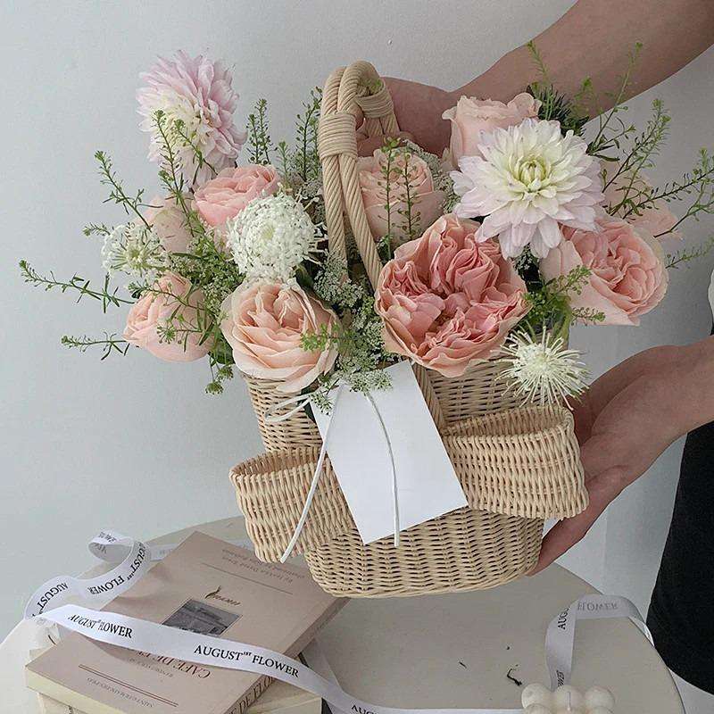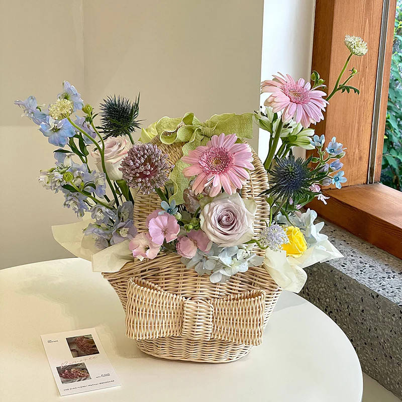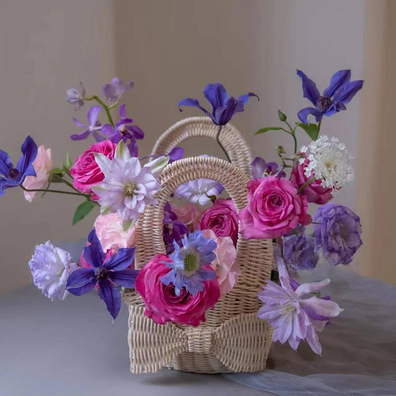 แจกันดอกไม้หวายตกแต่งลายโบว์น่ารัก ดีไซน์ใหม่ ทำมือ ขายส่ง พร้อมหูหิ้ว สำหรับตกแต่งบ้าน