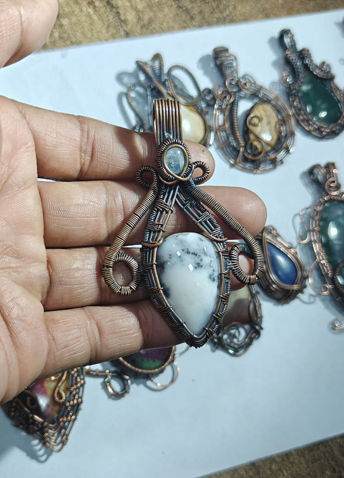 จี้หินแจสเปอร์รูปหยดน้ำสำหรับเด็ก งานแฮนด์เมดขายส่ง แบบคลาสสิก หุ้มด้วยลวดทองแดงโบราณ เครื่องประดับหินธรรมชาติ