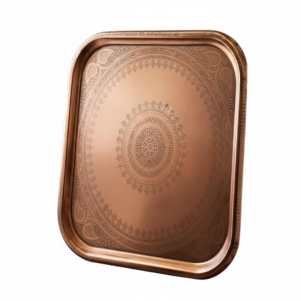 Wholesale Handmade Polished Copper Plated Rectangular Serving Trays Stainless Steel Metal Decorative Trays For Home & Hotel Use
