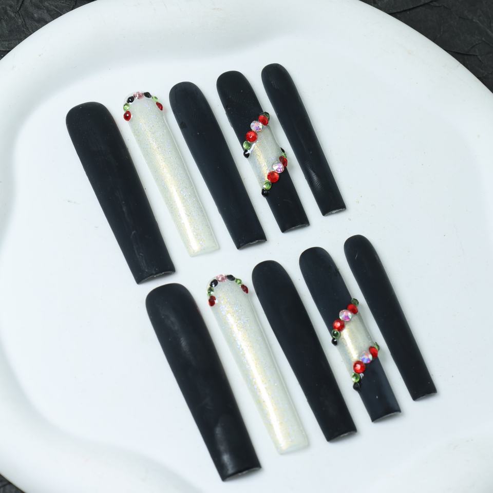 เล็บปลอมอะคริลิกทำมือขายส่ง หรูหรา แบบ 3 มิติ ปิดเต็มเล็บ ทรงโลงศพ ปลายเล็บแบบฝรั่งเศส คุณภาพสูง พร้อมกาวติดเล็บ