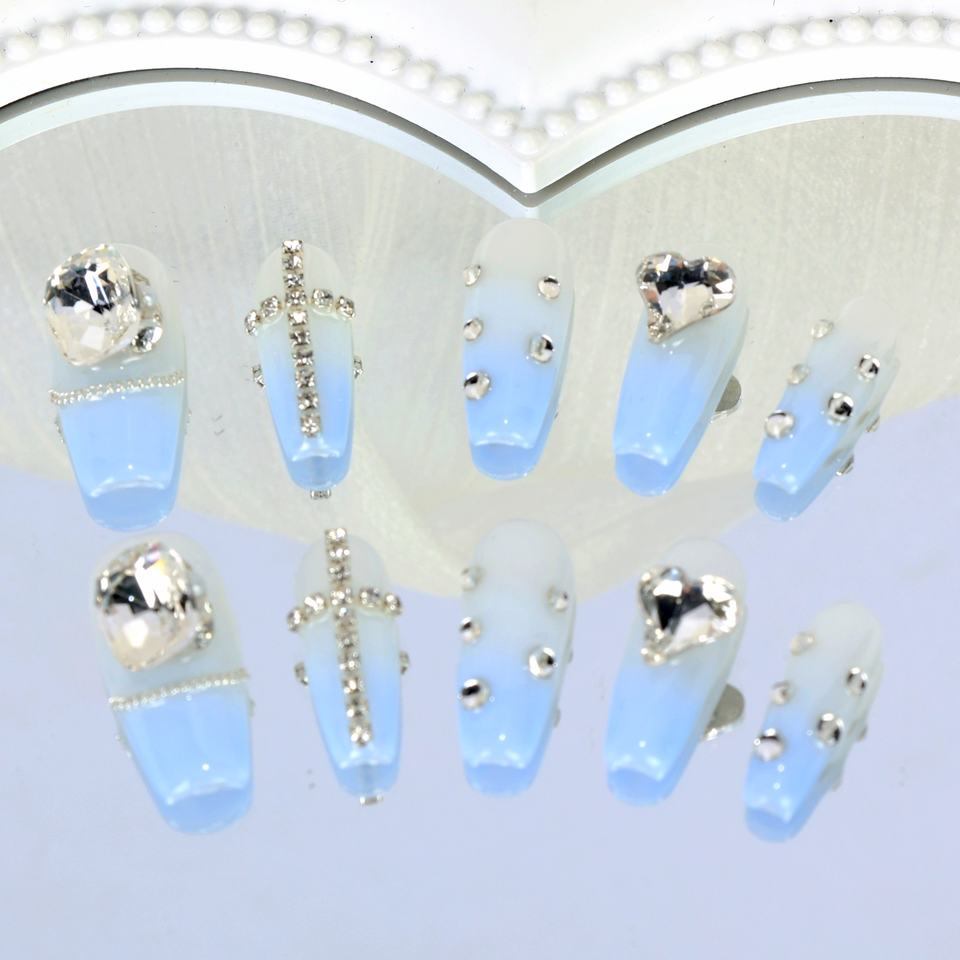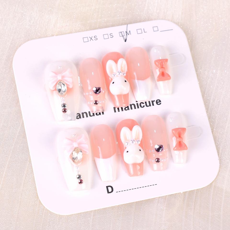 เล็บปลอมทำมือขายส่ง เล็บอะคริลิกหรูหรา 3 มิติ ปิดเต็มเล็บ ทรงโลงศพ ลายผีเสื้อ ปลายเล็บแบบฝรั่งเศส คุณภาพสูง
