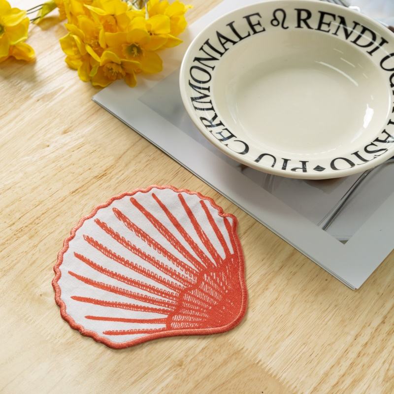 ชื่อผลิตภัณฑ์:ผ้าเช็ดปากที่รองแก้วค็อกเทลขอบหอยเชลล์พิมพ์ลายผ้าลินินผ้าฝ้าย