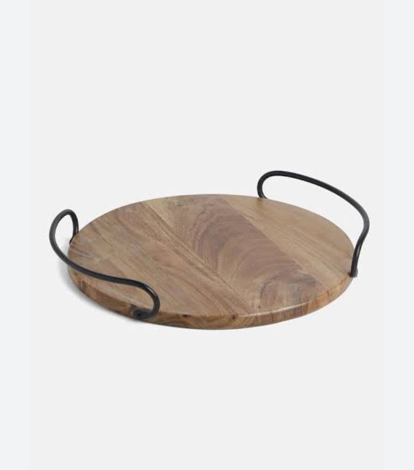 ถาดเสิร์ฟไม้ทรงสี่เหลี่ยมผืนผ้า ยี่ห้อ VISHAL HANDICRAFT พร้อมหูจับดีไซน์เชือกโลหะ สำหรับใช้บนโต๊ะกาแฟ