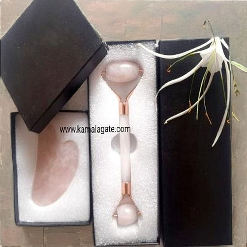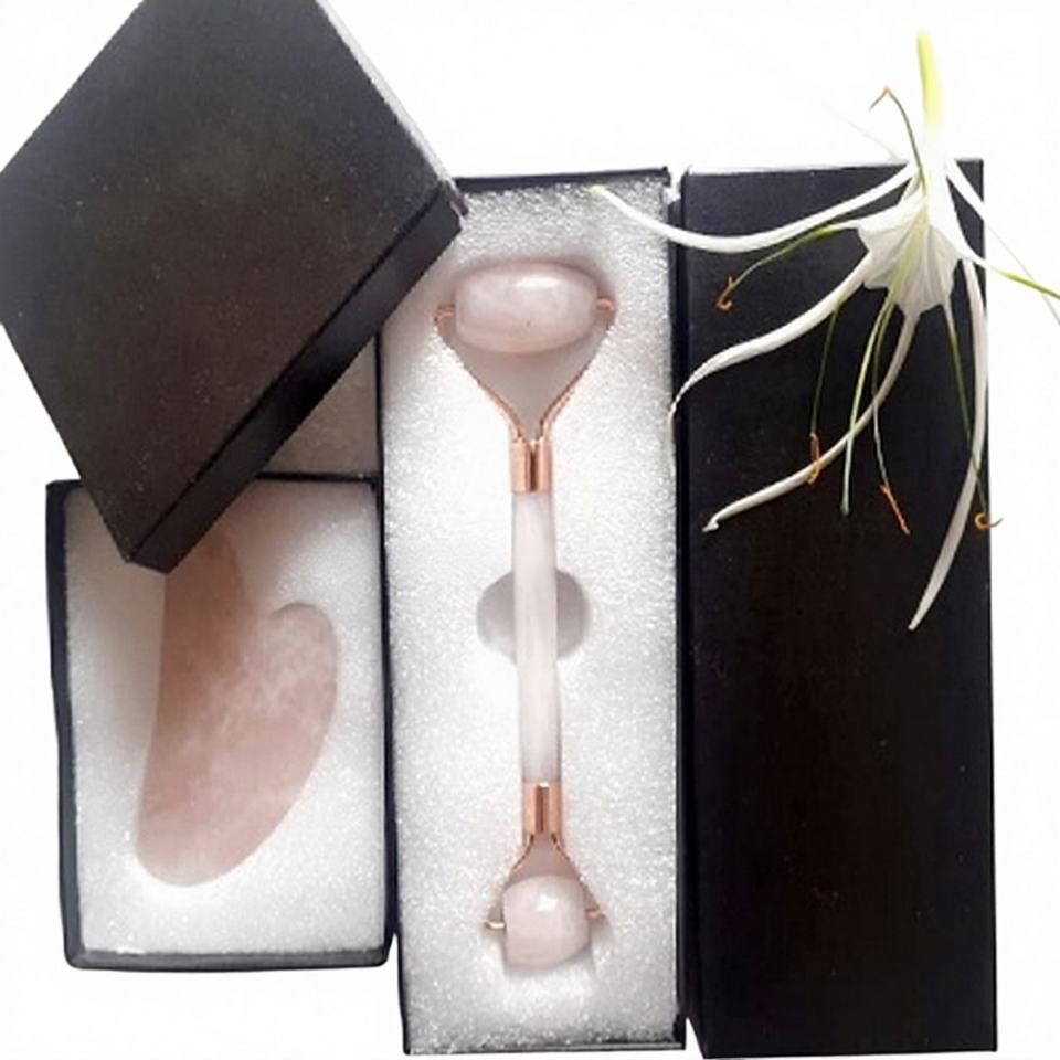 ชุดกล่องกัวซาหินโรสควอตซ์ธรรมชาติแกะสลักลายเฟิงชุย สำหรับนวดหน้าและตัว งานแฮนด์เมดขายส่ง ยุคใหม่ ความรัก ความสงบ