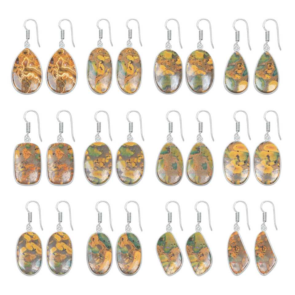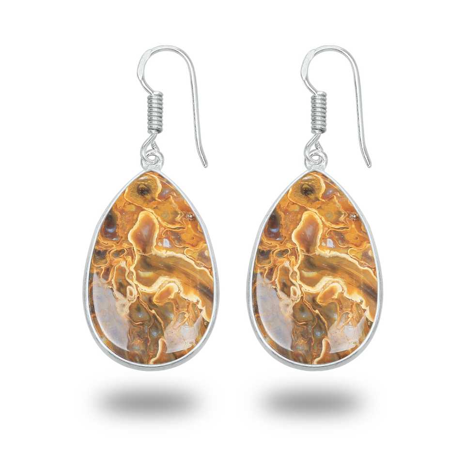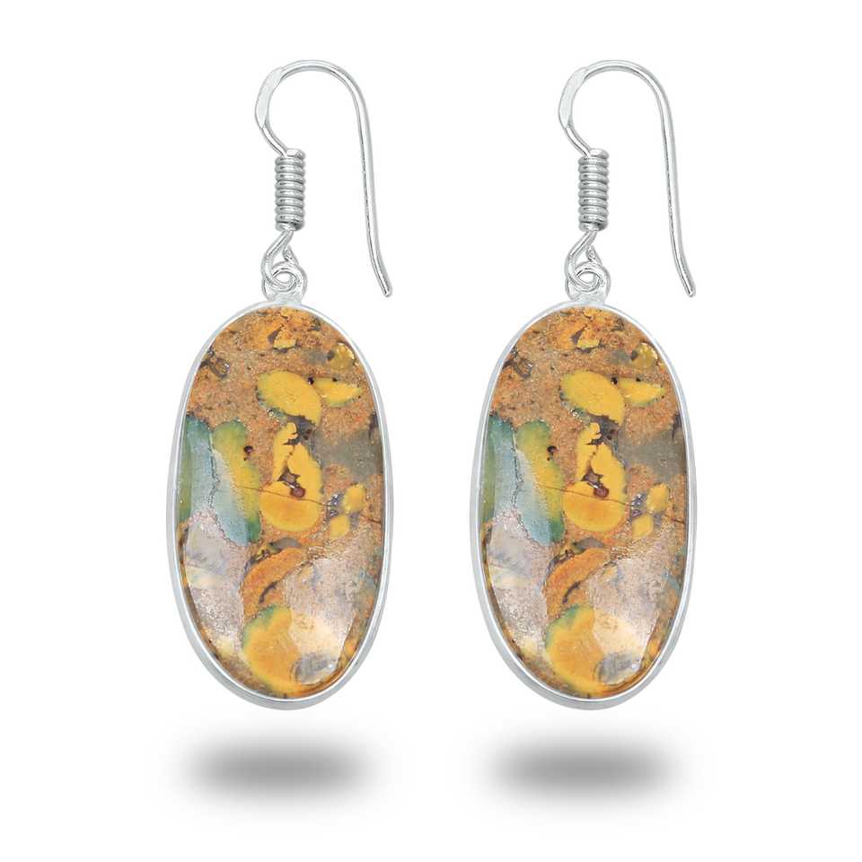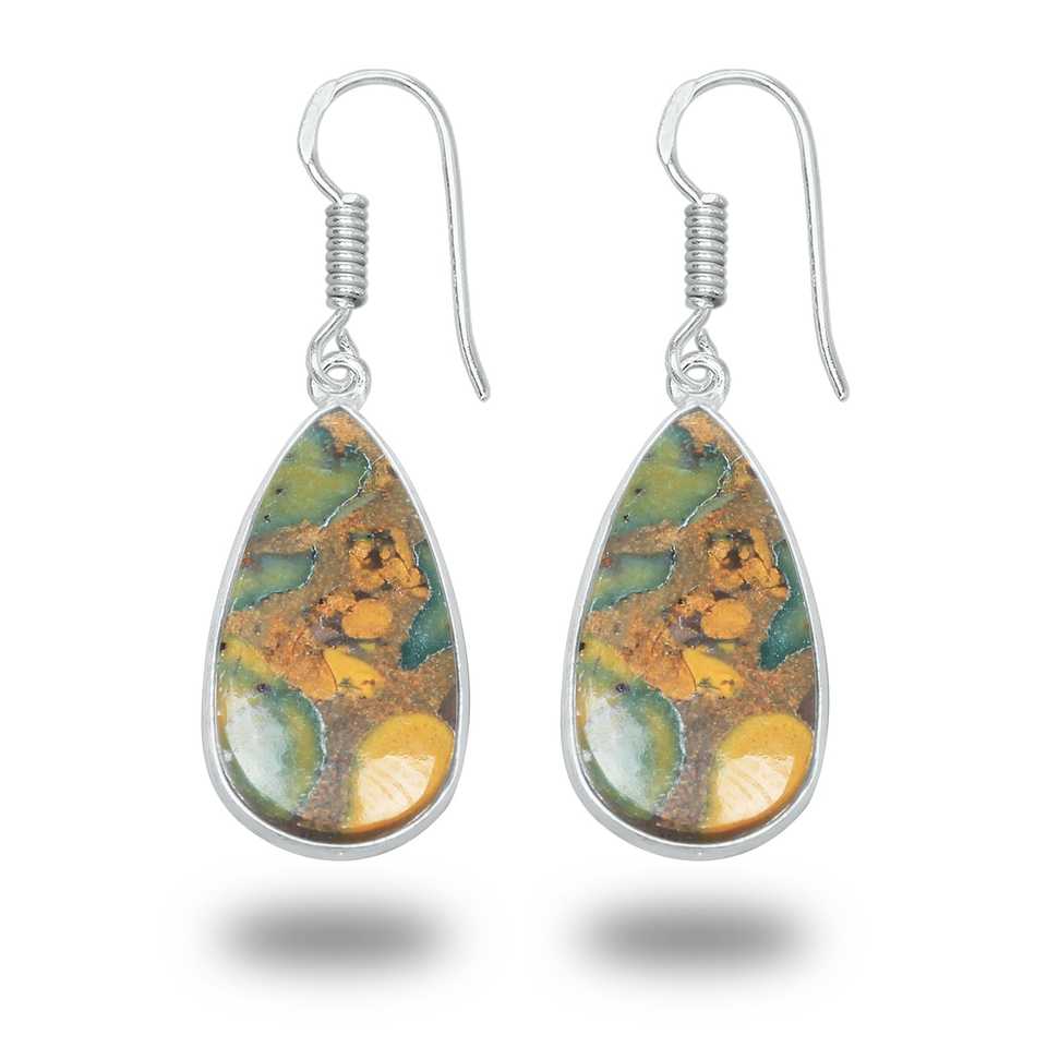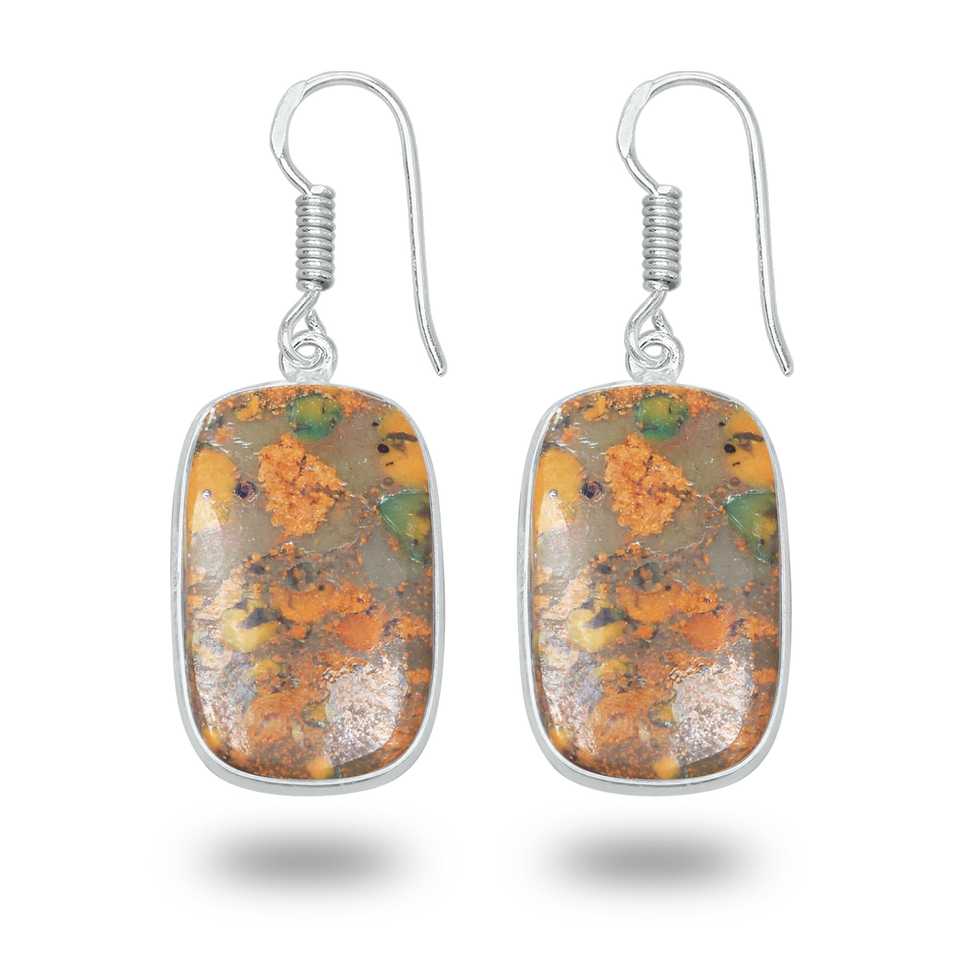 ต่างหูเงินแท้ทำด้วยมือ925แข็งมาพร้อมกับต่างหูตะขอพลอยรูปหินอ่อน Sabalgarh แท้ (Fruit Jasper)