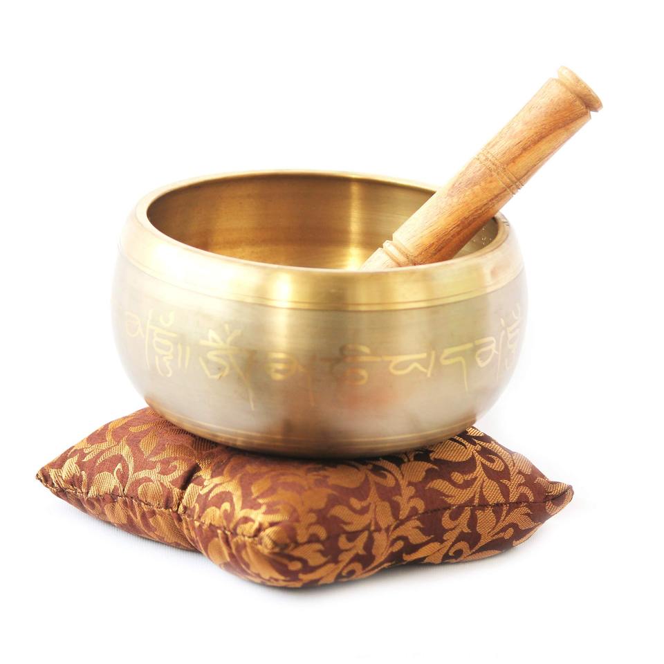 ชุดอุปกรณ์ประกอบการฝึกสมาธิ ประกอบด้วยชามร้องเพลงทิเบตทำมือจากทองเหลือง สำหรับการบำบัดทางจิตวิญญาณ พร้อมเบาะรอง