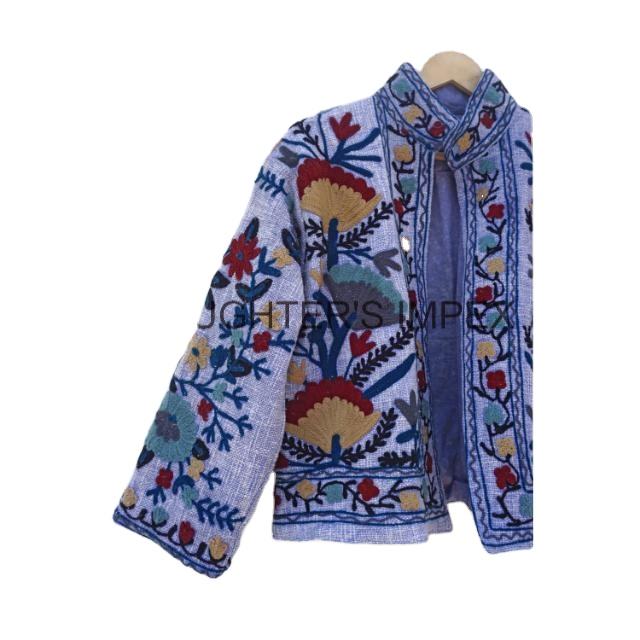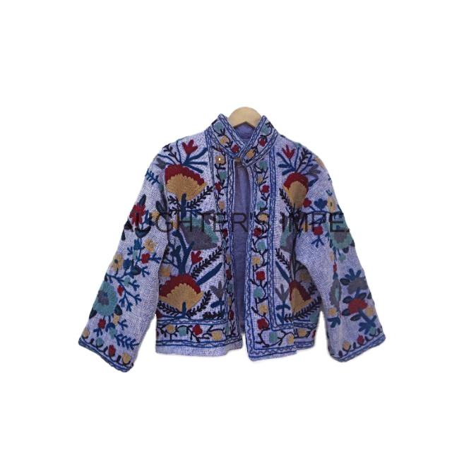 Suzani เสื้อแจ็กเก็ตแขนสั้นสำหรับผู้หญิงปักลายเสื้อแจ็กเก็ตสั้น suzani เสื้อคลุมขนาดฟรีไซส์แจ็คเก็ตผ้านวมสั้นของขวัญสำหรับเธอ