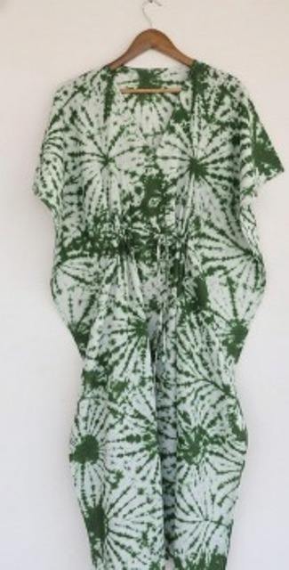 ชุดเดรสยาวคอวีทำมือแบบย้อมสีไทไดสำหรับผู้หญิง ฤดูใบไม้ร่วง/ฤดูหนาว แขนยาวเต็มตัว ผ้าฝ้าย 100% สวมใส่สบายๆ ขายส่ง