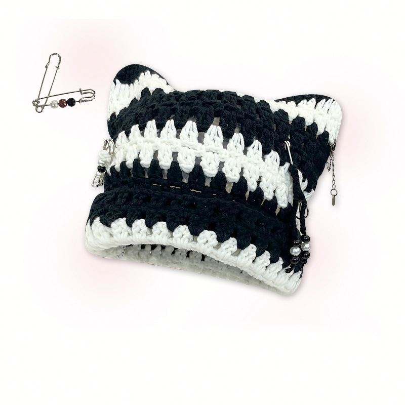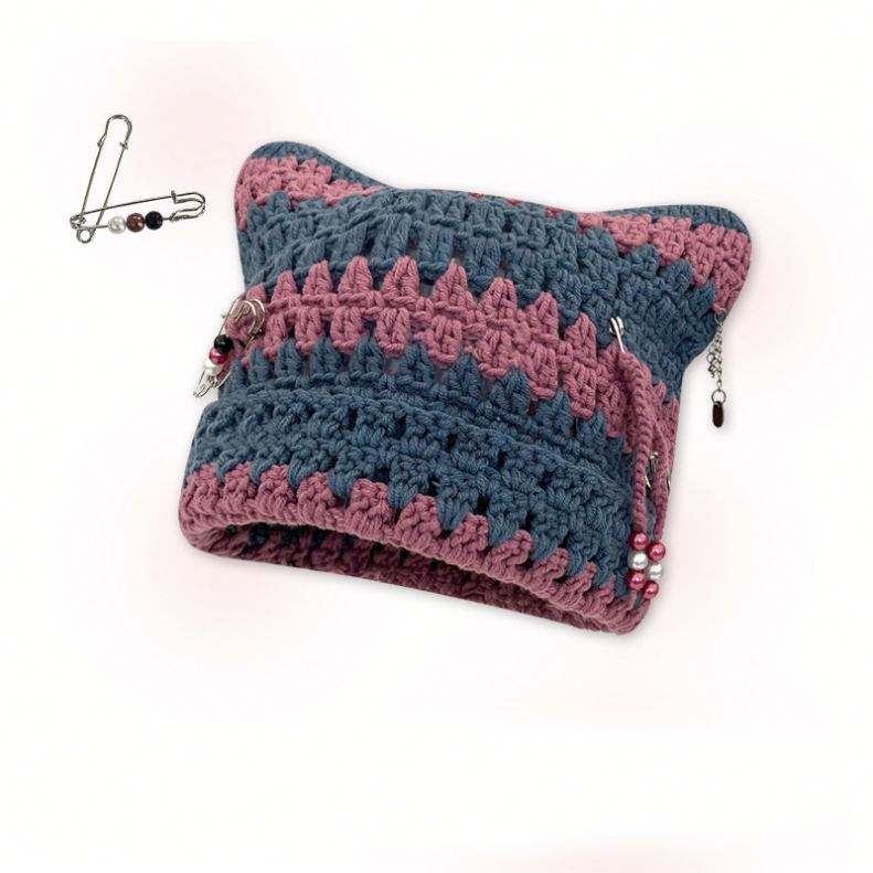 หมวกถักโครเชต์หลากสีสำหรับผู้หญิงหมวกทรงสี่เหลี่ยมพังค์ทำมือ