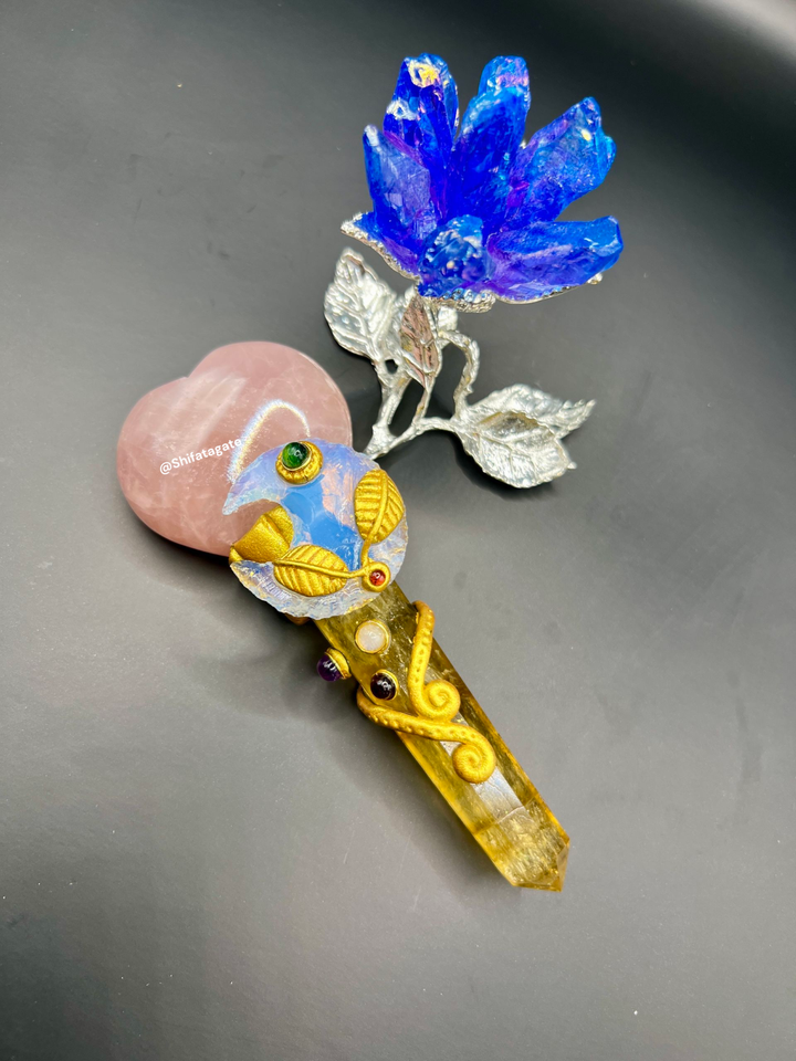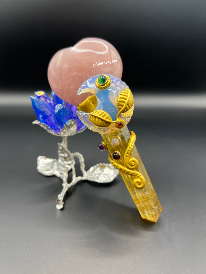 ไม้กายสิทธิ์คริสตัลฟลูออไรต์สีเหลืองและโรสควอตซ์