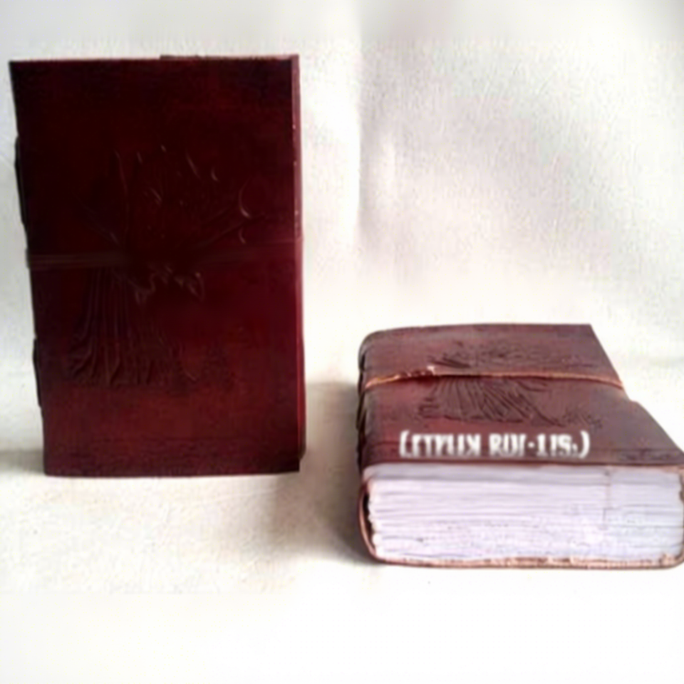 สมุดบันทึกหนังสีน้ำตาลทำมือสไตล์วินเทจลายนูนรูปผู้หญิงใต้ต้นไม้ พร้อมสายรัด ปิดด้วยเชือก เหมาะสำหรับเป็นของขวัญ ขายส่ง