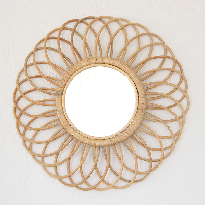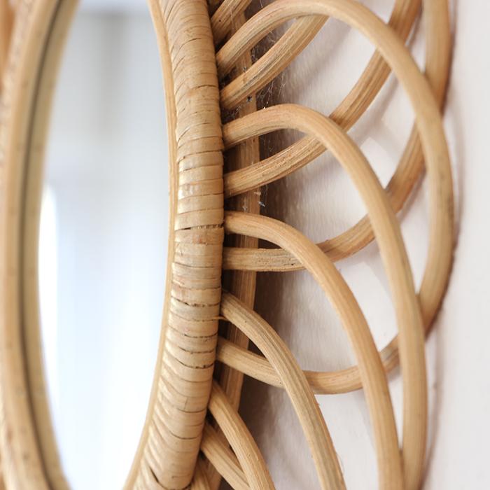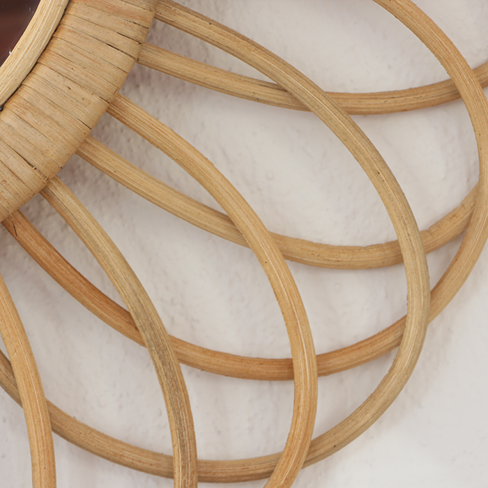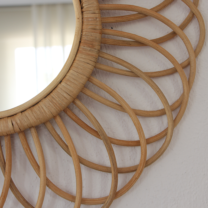 กระจกหวายทรงกลมขนาดใหญ่งานแฮนด์เมดแบบแขวนติดผนังสไตล์ถักทอธรรมชาติของตกแต่งบ้านสำหรับตกแต่งภายในร้าน