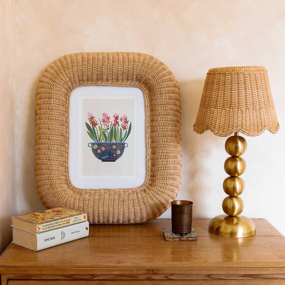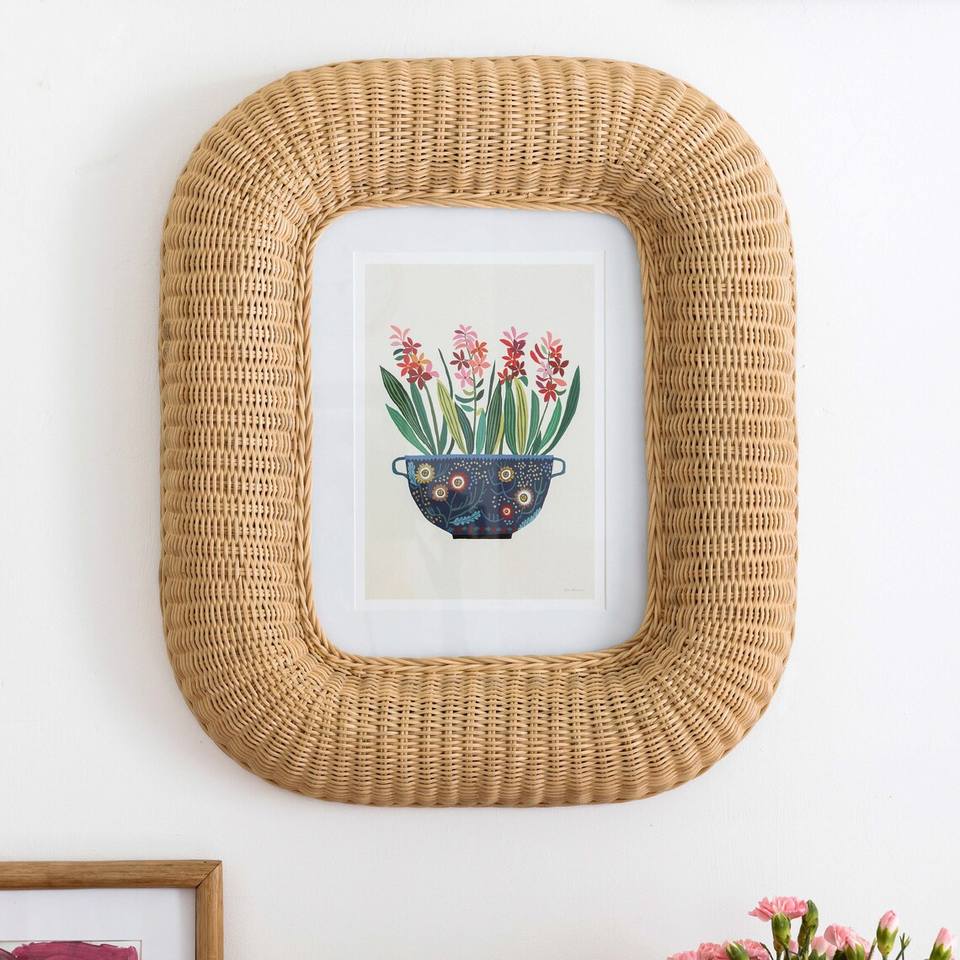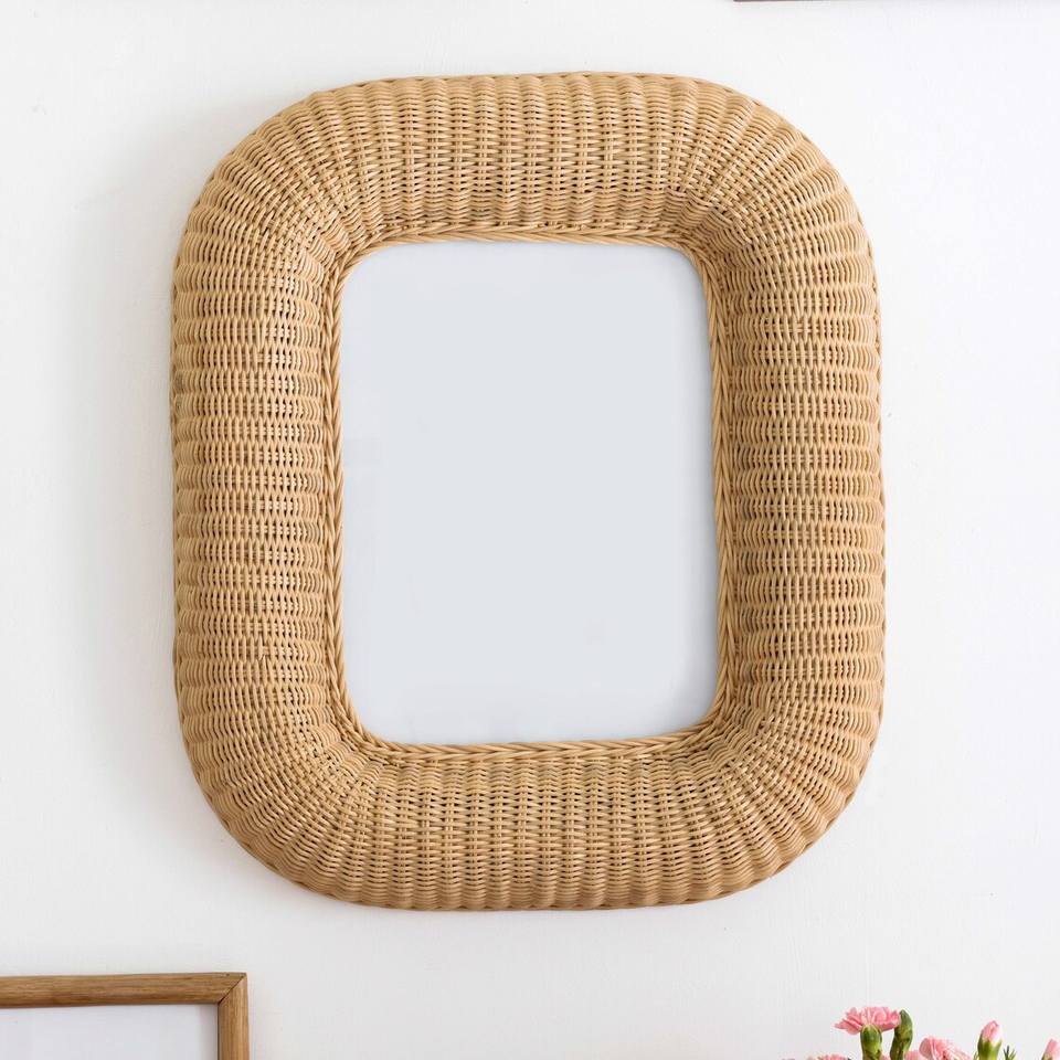 กรอบรูปหวายทรงสี่เหลี่ยมผืนผ้าสำหรับตกแต่งผนังภายในบ้านแบบถักด้วยมือ