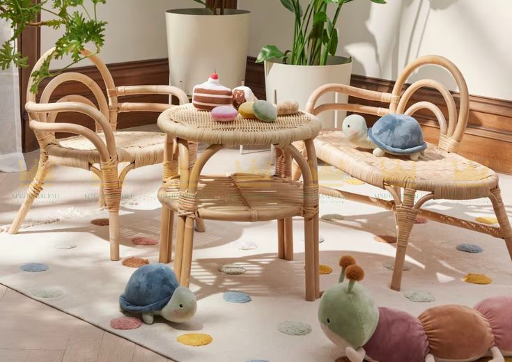 ชุดเฟอร์นิเจอร์หวายทอมือสำหรับเด็ก | เป็นมิตรกับสิ่งแวดล้อมเก้าอี้และโต๊ะสำหรับวันเกิด
