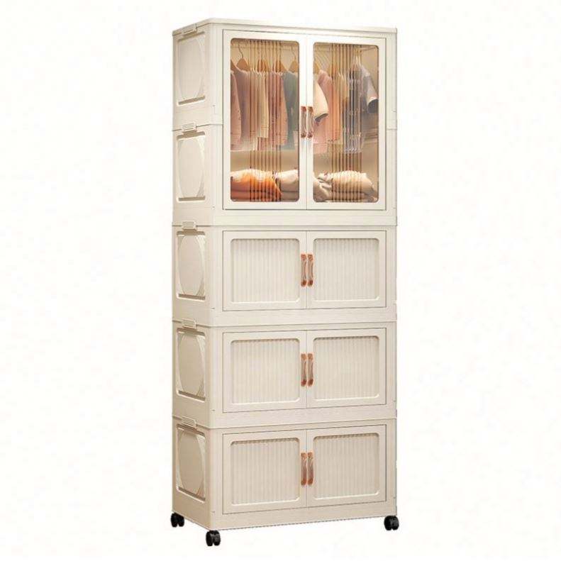 ตู้เก็บของพับได้แบบสองบาน โมเดิร์น ยี่ห้อ Haogle สำหรับขายส่ง ตู้เก็บของพลาสติกพับได้แบบพกพาพร้อมล้อ