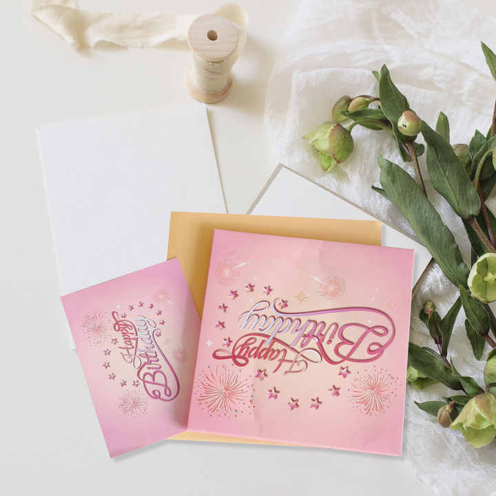 การ์ดสุขสันต์วันเกิดดอกไม้ไฟและกระดาษเค้กเพลง3D ป๊อปอัพเป่าเทียนการ์ดอวยพรวันเกิด