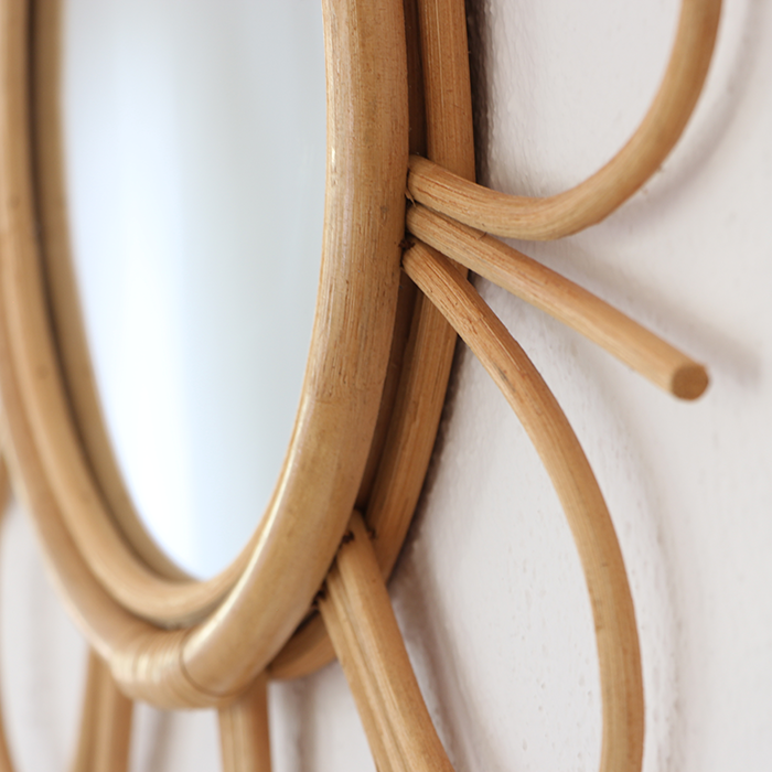 กระจกหวายสานรูปหัวใจทำด้วยมือกระจกตกแต่งผนังสไตล์โบฮีเมียนสีธรรมชาติดีไซน์เก๋ไก๋สไตล์โบฮีเมียนสำหรับตกแต่งภายในร้าน