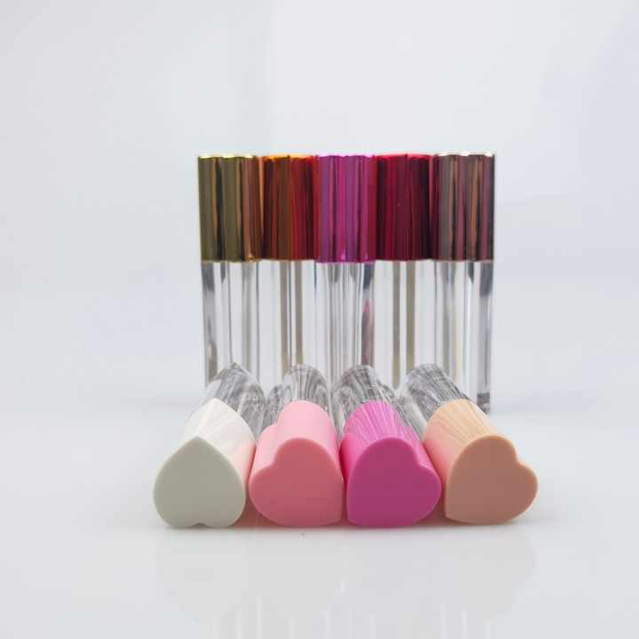หลอดลิปกลอส/ลิปสติก/คอนซีลเลอร์รูปหัวใจแบบขายส่ง บรรจุภัณฑ์เครื่องสำอางพลาสติกเปล่า ฝาสีชมพู ขวดใส