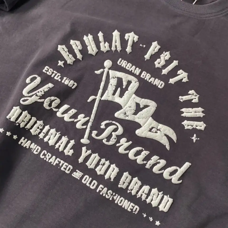 เสื้อยืดผู้ชายผ้าฝ้ายหนาพิมพ์ลายพัฟโฟม3D เสื้อยืดแฟชั่นทรงพอดีตัวแบบลำลองออกแบบโลโก้ได้ตามต้องการ