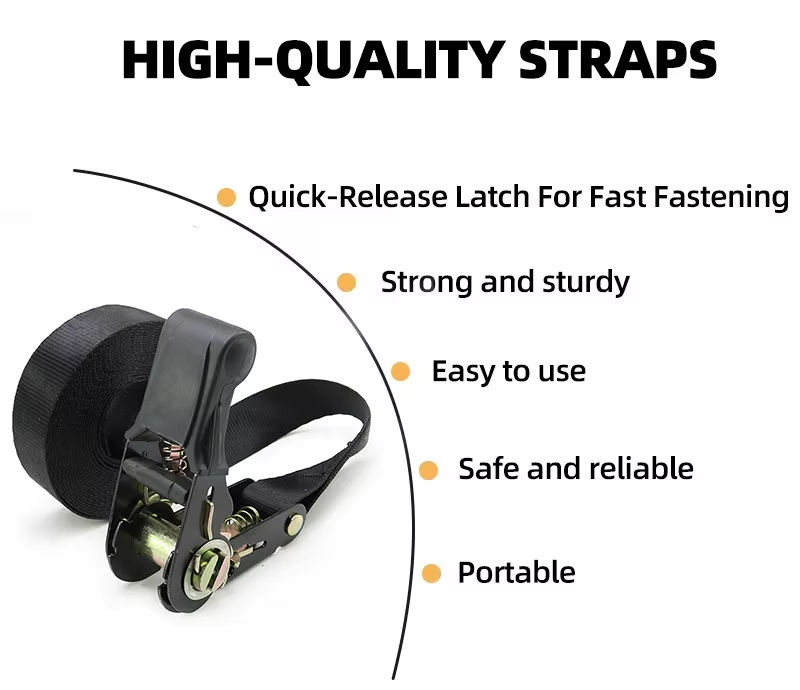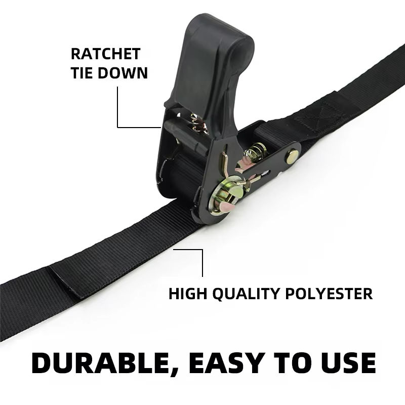 สายรัดโพลีเอสเตอร์แบบมีตัวล็อค รับน้ำหนักได้ 800 กก. ขนาด 1 นิ้ว สำหรับงานหนัก พร้อมตะขอรูปตัว J สองอัน สำหรับรถบรรทุก รถยนต์ และการรัดสินค้า ขายส่ง