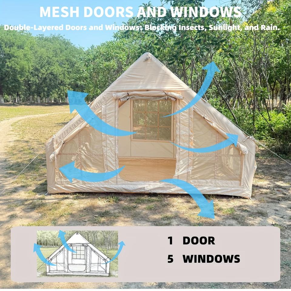 Wholesale Heavy Duty Inflatable Camping Tent 3-5 Person, Waterproof 4 Season Glamping Dome with Stove Jack for Family Events